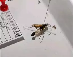 金环胡蜂是胡蜂科、胡蜂属昆虫。雌蜂体长约40毫米,工蜂体长25毫米,雌蜂体黑褐色,头部橙黄色,…