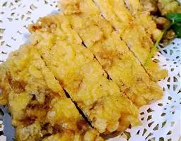 鱼肉煎蛋是一道美食,主要制作材料有鸡蛋等。