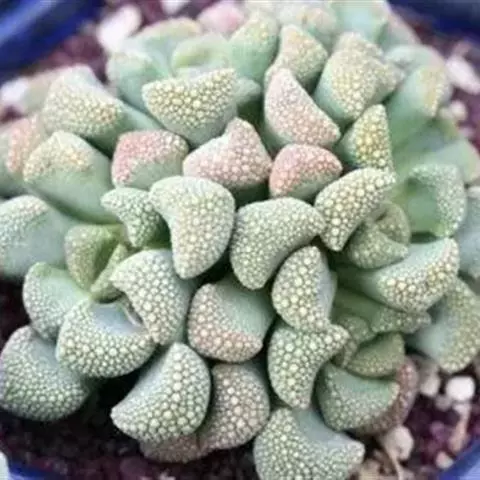 碧光环是番杏科碧光玉属多年生肉质草本植物。碧光环叶表面有半透明的颗粒感,晶莹剔透;两片圆柱形的叶子,…