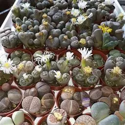 生石花,番杏科生石花属多年生肉质草本植物。植株几乎无茎;花朵较大,颜色艳丽,呈多边形,…