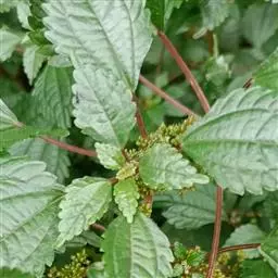 草本。茎肉质,无毛,高(5-)30(-60)厘米,不分枝或具分枝。叶对生,在茎顶部的叶密集成近轮生,同对的叶不等大,菱状卵形或卵形,稀三角状卵形或卵状披针形,长1-6(-10)厘米,宽0.8-3(-5)厘米,先端常锐尖,有时钝尖或粗尾状渐尖,基部楔形,稀近圆形或近截形,稍不对称,边缘具短睫毛,下部全缘,其余每侧有数枚圆锯齿或钝齿,下部的叶有时全缘,两面生极稀疏的短毛,基出脉3条,其侧生的一对弧曲,伸达叶中上部齿尖,或与最下部的侧脉在近边缘处环结,侧脉2-3(-5)对,钟乳体细条形,长0.3-0.4毫米,在上面明显;叶柄纤细,长0.5-2(-5)厘米,光滑无毛;托叶膜质,淡绿色,长圆形,长3-5毫米,半宿存。花单性,雌雄同株,常混生,或异株,雄聚伞花序具细梗,常紧缩成头状或近头状,长1-1.5厘米;雌聚伞花序具纤细的长梗,连同总梗长1-3(-5)厘米,团伞花簇常紧缩成头状或近头状,一、二枚或数枚疏松排列于花枝上,序轴近于无毛或具微柔毛;苞片卵形,长约0.4毫米。雄花具梗,在芽时倒卵形或倒圆锥形,长约1毫米;花被片5,覆瓦状排列,合生至中部,倒卵形,内凹,在外面近先端处有短角,其中二枚较长;雄蕊5;退化雌蕊明显,长圆锥状,长约0.5毫米。雌花具梗;花被片5,近等大,长圆状披针形,与子房近等长,其中2-3枚在背面常有龙骨状突起,先端生稀疏短刚毛;子房卵形;退化雄蕊明显,鳞片状,长圆状披针形,在果时长约0.8毫米。瘦果卵形,稍扁,长1-1.4毫米,熟时灰褐色,外面有疣状突起,几乎被宿存花被包裹。花期7-9月,果期8-11月。