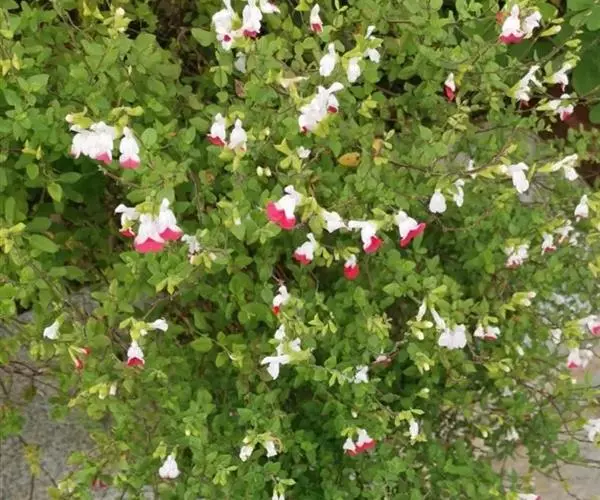 樱桃鼠尾草(学名:Salvia greggii),唇形科鼠尾草属多年生草本植物,原产于美国德州至墨西哥,单叶对生,披针形、椭圆形或卵形,锯齿叶缘,总状花序,花萼合生,钟状,二唇形,宿存,花冠唇形,有桃红、深红、粉红、杏黄、白色等。樱桃鼠尾草的草叶散发出淡淡的樱桃香味 ,因而得此别名 。叶片一般不食用,常作香包等芳香用途。