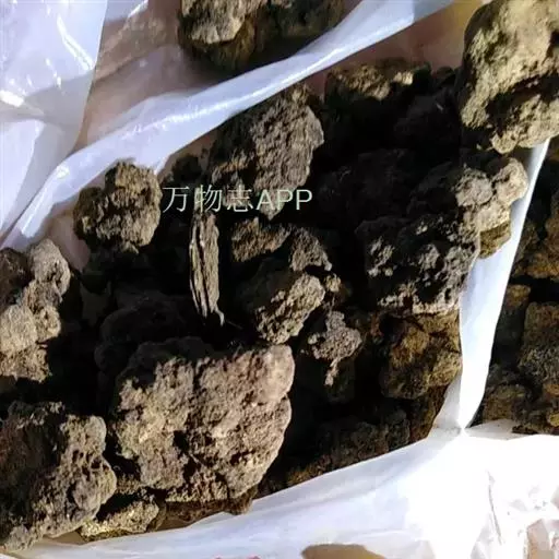 棕色。①淀粉粒众多,单粒呈类球形、盔帽形或三角状锥形,直径4-50μm,脐点呈人字状、星状、弧线状或点状,层纹不明显。复粒直径6-51μm,由2-9分粒组成。②草酸钙簇晶较多,直径约80μm,偶见簇晶与较大的类方形结晶合生。③具缘纹孔导管直径17-178μm;另有细小的网纹导管。