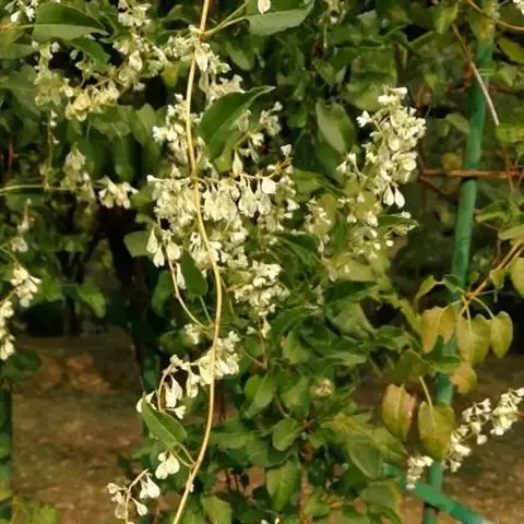 花:花序圆锥状,顶生或腋生,长10-20厘米,分枝开展,具细纵棱,沿 何首乌图 棱密被小突起;苞片三角状卵形,具小突起,顶端尖,每苞内具2-4花;花梗细弱,长2-3毫米,下部具关节,果时延长;花被5,深裂,白色或淡绿色,花被片椭圆形,大小不相等,外面3片较大背部具翅,果时增大,花被果时外形近圆形,直径6-7毫米;雄蕊8,花丝下部较宽;花柱3,极短,柱头头状。