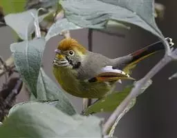 黄喉雀鹛是雀眉科、拟希鹛属小型鸟类,体长11-12厘米。头顶浅黄色具黑色鳞状斑,…