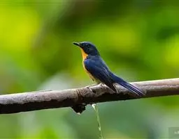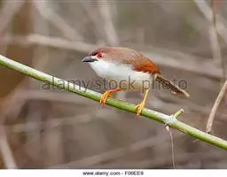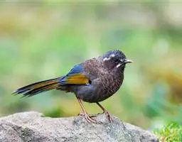 白腹幽鹛,体小(14厘米)的暖褐色鹛。全长约150毫米。上体橄榄褐色;眼先污褐灰;颏、喉白色,具黑色矢形斑;胸具淡棕橄榄色宽阔带斑;腹部中央白色。与棕胸雅鹛及雀鹛的区别在尾短而较圆。虹膜-红褐;嘴-带黑;脚-肉褐色。常栖息于海拔1000-1500米的山林间,并随着季节而垂直迁徙,夏季至高山,冬季至平原,常栖于竹林、灌丛。分布于云南西部(留鸟) 。