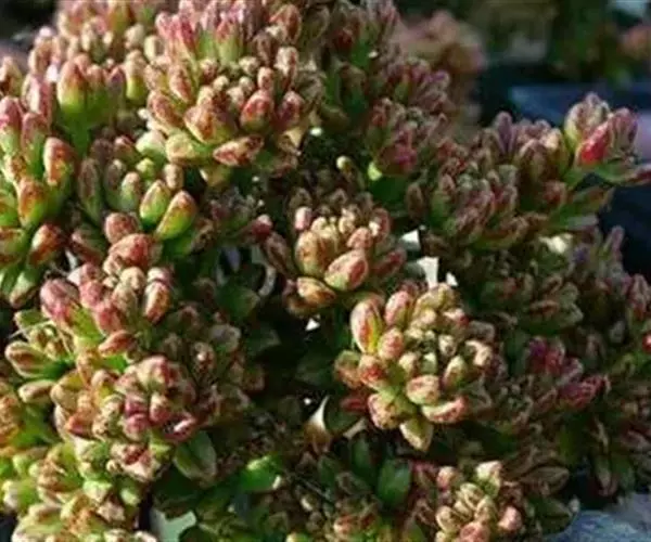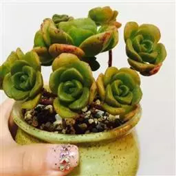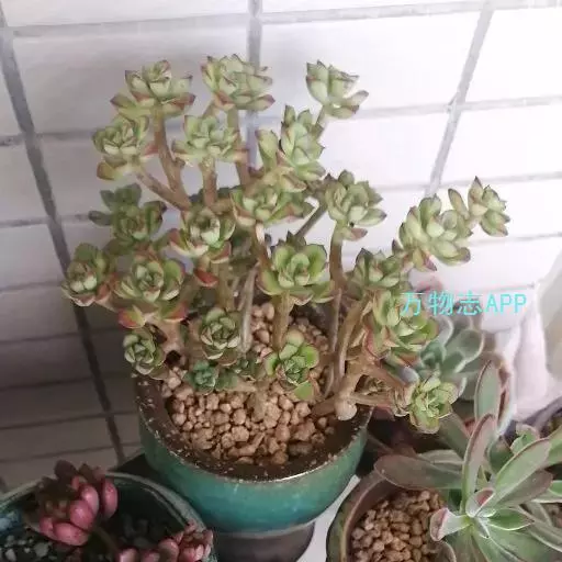 株型迷你,多分枝。小人祭细小卵状的叶片排列成莲花状,叶片有粘性,叶片绿色中间带紫红纹,叶缘也有红边,充分光照下,叶片颜色会变色,紫红色纹理也愈发明显,叶片颜色多变,非常迷人。小人祭春季开花,总状花序,小花黄色。