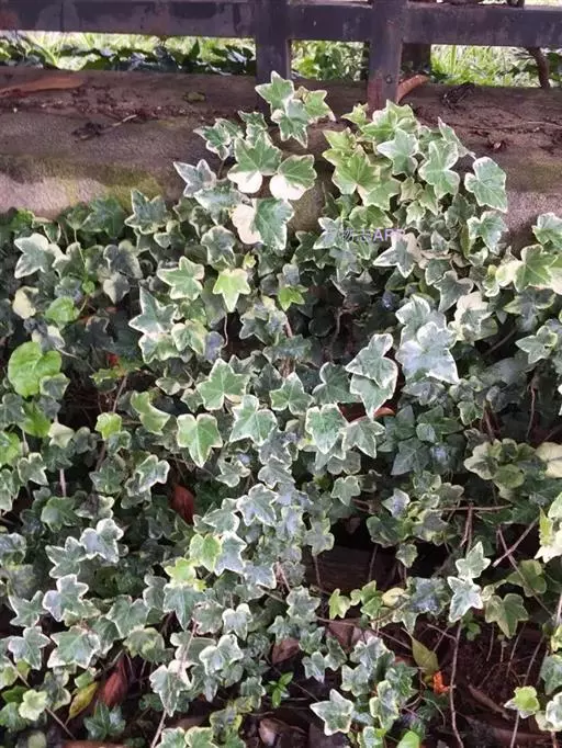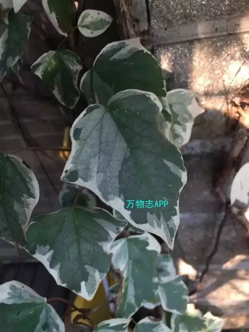 3、斑叶常春藤‘Argenteo-variegata’叶有白斑纹。