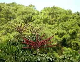常绿藤木,借气生根攀援;幼枝具星状柔毛。单叶互生,全缘,营养枝上的叶3~5浅裂;花果枝上的叶不裂而为卵状菱形。伞形花序。果黑色,球形,浆果状;翌年4~5月果熟。