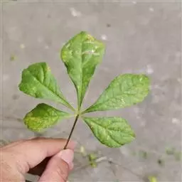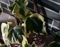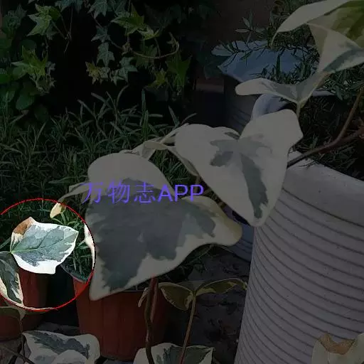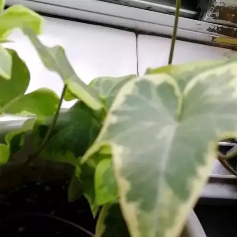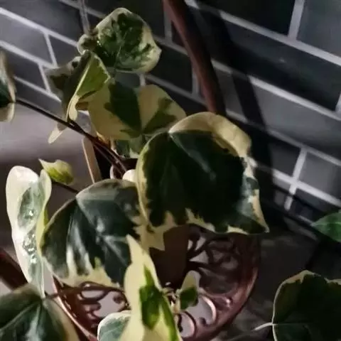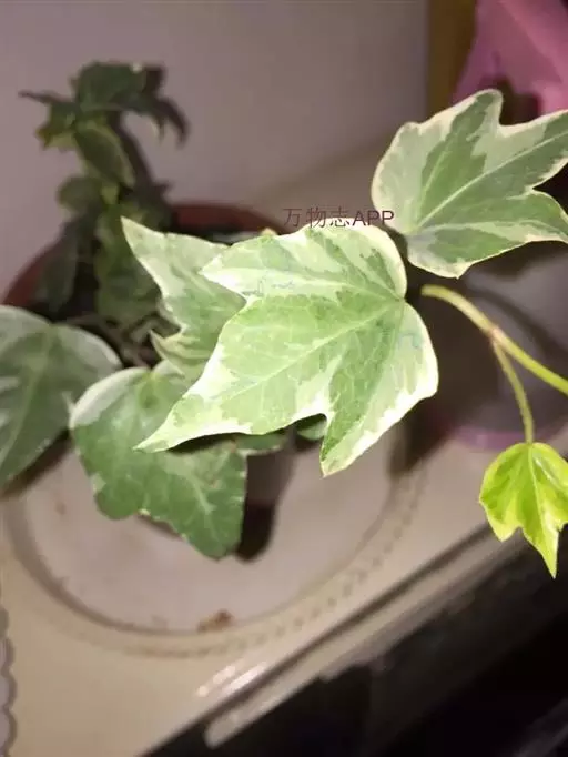 5、彩叶常春藤‘Discolor’叶较小,乳白色,带红晕。