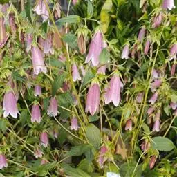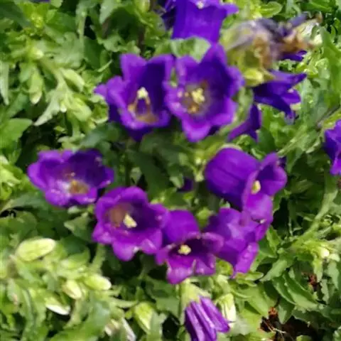 丛生风铃草(学名:Campanula carpatica Jacq.):植株高20-40厘米。基生叶圆心形,叶片上部较窄成圆卵形;花朵单生,有较长的花梗;花萼裂片钻形;花冠宽钟状,白色,蓝色,粉红色或紫色。花期3-8月。