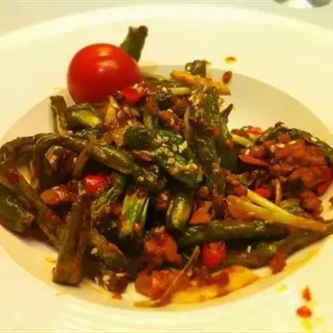 榄菜四季豆是以牛肉馅、四季豆为主料,盐、洋葱为配料制作而成的菜品。