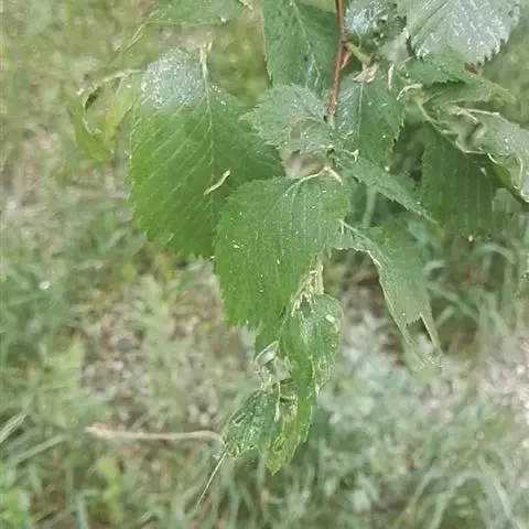叶卵形或卵状椭圆形,长4-15(常7-12)厘米,中部或中下部较宽,先端渐尖,基部极偏斜,一边楔形,一边半圆形至半心脏形,边缘具重锯齿,侧脉每边12-22条,叶面除主脉凹陷处有疏毛外,余处无毛,叶背有毛或近无毛,脉腋常有簇生毛,叶柄长5-9毫米,上面有毛。