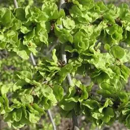 树皮暗灰色,粗糙,不规则纵裂。幼树枝条直立,且被白色毛;老树枝条先端下垂,有时木栓质发达成为瘤状。…