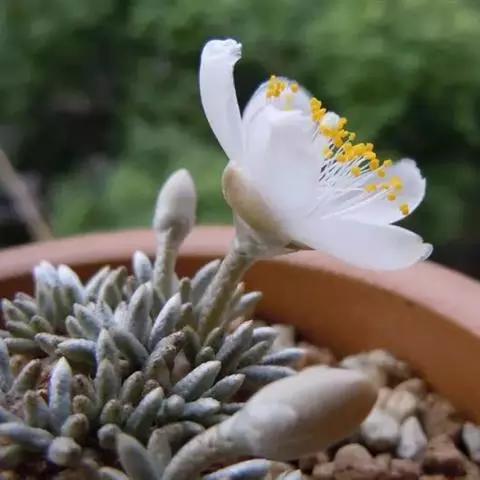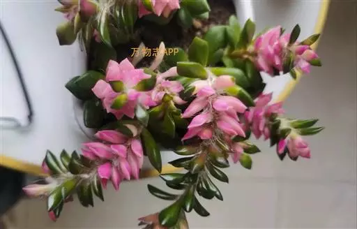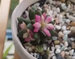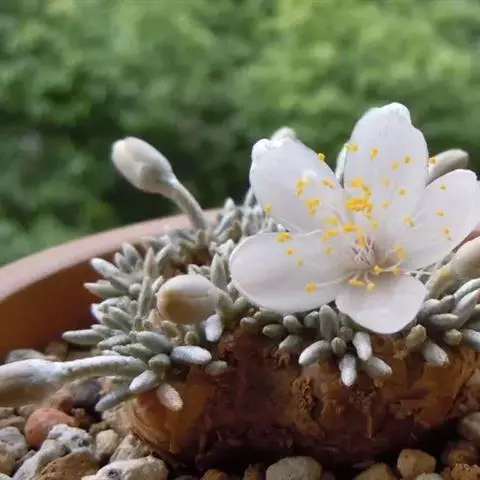 吹雪之松锦原产纳米比亚,是一种变异带有白色锦斑的多肉植物。马齿苋科、回欢草属多肉植物(多浆植物),别称回欢草,顶端叶片似莲花展开,叶面厚实,五彩雍华,喜阳(全日照),但忌长时间放在烈日下。株高仅5厘米,叶色倒卵形,叶腋间有白色丝状毛,开玫瑰色小花。