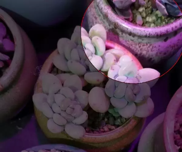 顶端叶片似莲花展开,叶面厚实,五彩雍华。