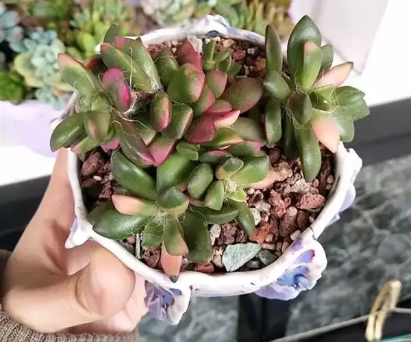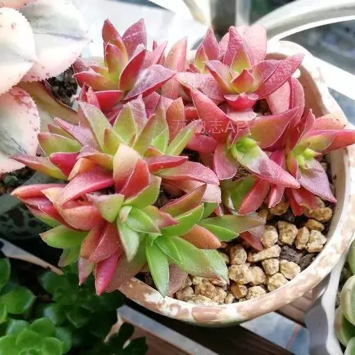 变异品种叶上有橘红色斑块,更具观赏性。是马齿苋科中唯一被作为多肉植物介绍的一类。夏季注意节水、通风。喜太阳、忌长时间放在烈日下。可放在窗前、阳台和其他散射光明亮处。冬夏休眠期应节水遮阳。