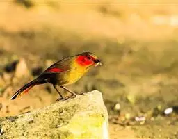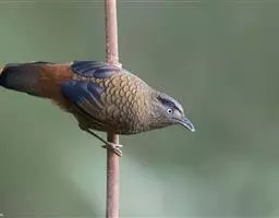 习性:留鸟。常单独或成对活动,有时也集成小群。在林下灌丛或竹丛间跳来跳去,边活动边发出“欺威激威-欺威-”的声音。 鸣声特别,甜美而含混的哨音joey joey dii-wiu,倒数第二声音最高。也有多种尖叫、成串的嘁喳声及颤鸣。