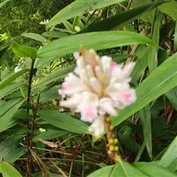 密苞山姜是姜科,山姜属多年生草本植物,株高可达1.5米。叶片椭圆状披针形,顶端渐尖,并具细尾尖,基…