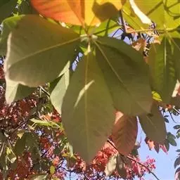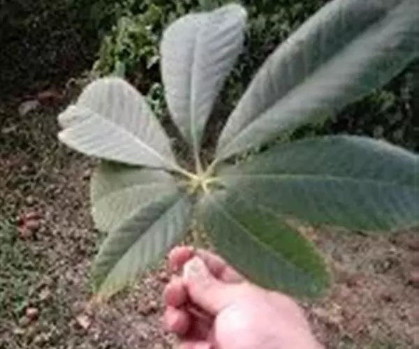 本种有较长的叶柄,常长达30厘米,小叶较厚,近于革质,中间的小叶较之两侧的小叶常长2倍,花序比较粗壮,基部直径约10厘米,极易与相近各种区别。