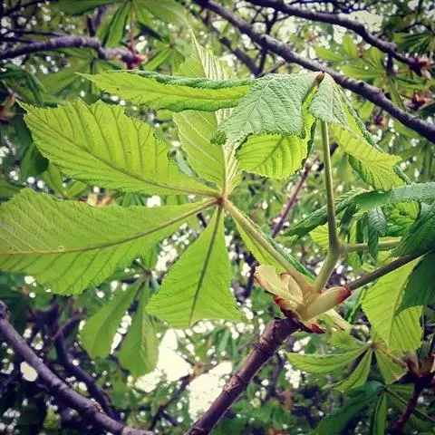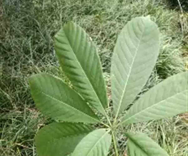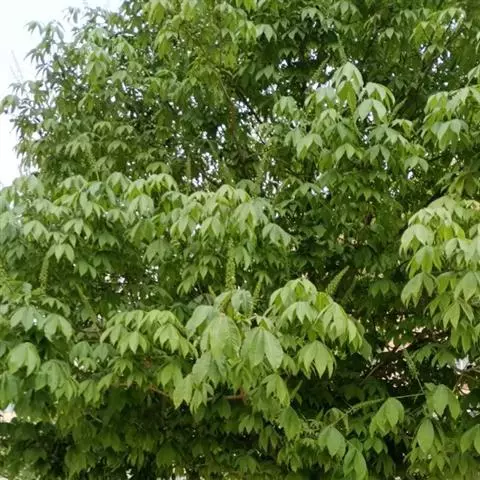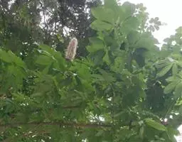 长柄七叶树,是双子叶植物纲、七叶树科、七叶树属落叶乔木,树皮灰褐色,无毛,掌状复叶,叶柄长,小叶较厚,近于革质,花序顶生,细长圆筒形,花杂性,花萼管状,花丝细瘦,花药长圆形,蒴鰠倒卵圆形或近于椭圆形。