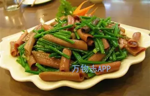 海肠 补肾温阳:韭菜性温,味辛,具有补肾起阳作用,故可用于治疗阳痿、遗精、早泄等病症;益肝健胃:韭菜含有挥发性精油及硫化物等特殊成分,散发出一种独特的辛香气味,有助于疏调肝气,增进食欲,增强消化功能;行气理血: