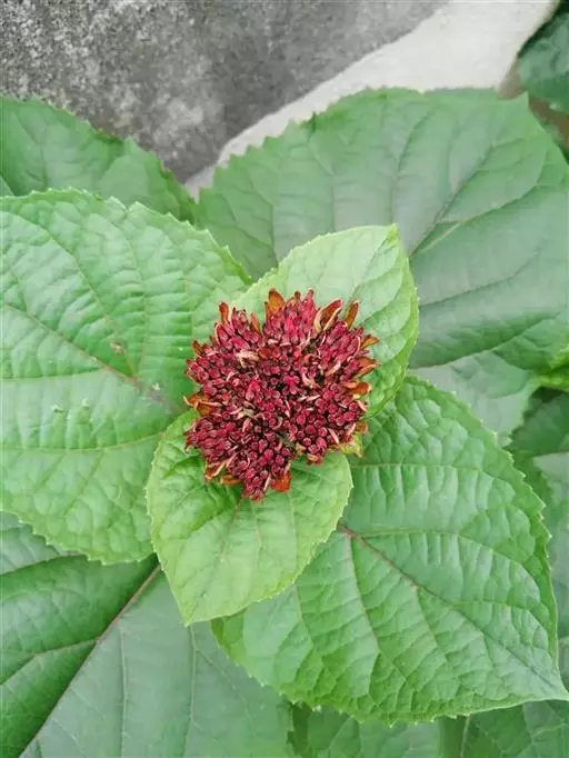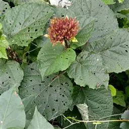 臭牡丹(学名:Clerodendrum bungei Steud.)是马鞭草科,大青属灌木,高可达2米,植株有臭味;花序轴、叶柄密被脱落性的柔毛;小枝近圆形,叶片纸质,宽卵形或卵形,边缘具粗或细锯齿,侧脉表面散生短柔毛,伞房状聚伞花序顶生,苞片叶状,披针形或卵状披针形,小苞片披针形,花萼钟状,萼齿三角形或狭三角形,花冠淡红色、红色或紫红色,裂片倒卵形,花柱短于、核果近球形,5-11月开花结果。