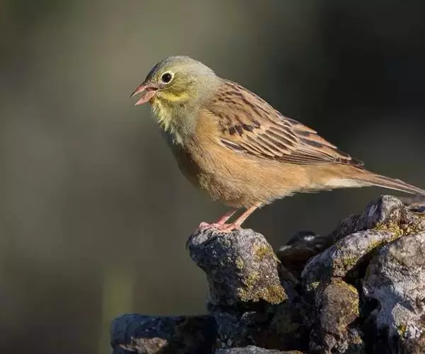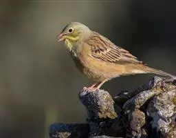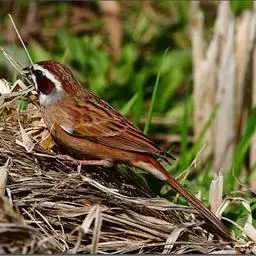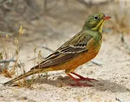 圃鹀(学名:Emberiza hortulana):体重20-25克,体长150-175毫米,属小型鸣禽。喙为圆锥形,与雀科的鸟类相比较为细弱,上下喙边缘不紧密切合而微向内弯,因而切合线中略有缝隙;体羽似麻雀,头上、后颈及胸橄榄绿色,翕呈栗褐色;下体大部分淡栗色;飞翔时最外侧两对尾羽的白色显著。虹膜肉桔色,嘴红褐色,脚淡红棕色或肉红色。