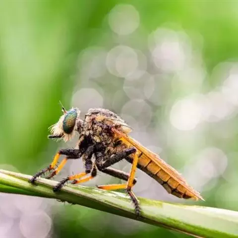 大头金蝇别名红头蝇、绿虫蝇,成虫体长8~11毫米,绿蓝色、有明显光泽,头部宽,顶部黑色,复眼大,深红色,额中条褐红色,颜和颊部橙黄色;触角和小颚须呈褐色;胸腹部绿色偏蓝,有紫色光泽,幼早成熟时,身体蛆形,为黄白色,前端尖细,末端截平。体分14节,头部1节,胸部3节,腹部10节,体表有小棘形成的环;蛹呈桶状,为围蛹,即蛹壳为第3龄幼虫皮收缩而成。蛹的颜色由白逐渐变深,最后为栗褐色。