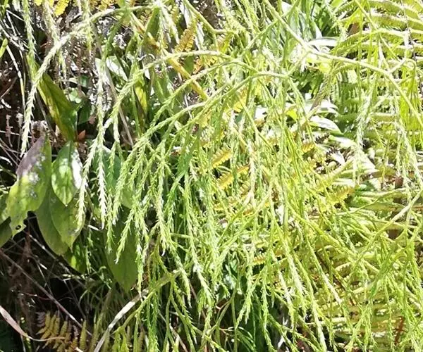 藤石松,为石松科石子藤石松,多年生攀援草本植物,长可达4m。主茎下部有叶疏生,叶钻状披针形,先端长渐尖,膜质,灰白色,向上的叶较小,绿色,厚革质,有早落的膜质尖尾。植物的全草可供药用,《四川中药志》:能舒筋活血。治风湿关节痛,跌打损伤,筋骨疼痛,月经不调及脚转筋。