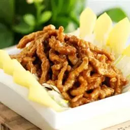 京酱肉丝,是一道知名度很高的菜肴,它是北京菜中的经典代表菜之一。制作时选用猪瘦肉为主料,辅以甜面酱…