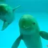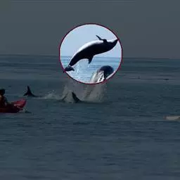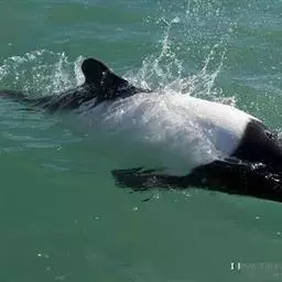 真海豚,身体细而流线型。体色十分复杂而独特,通常十字交叉型,黄褐色在前灰色在后,背面黑色向下延伸,…