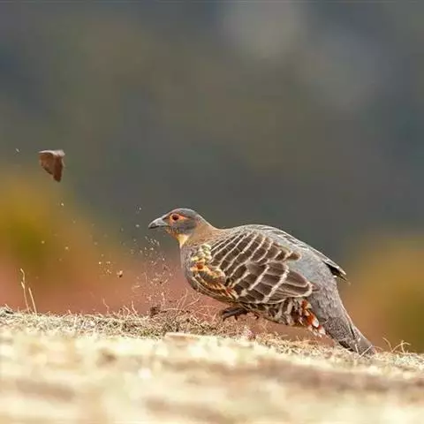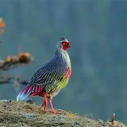血雉雉科血雉属鸟类,别名血鸡、松花鸡,血雉的雄鸟大覆羽、尾下覆羽、尾上覆羽、脚、头侧、腊膜为红色,…