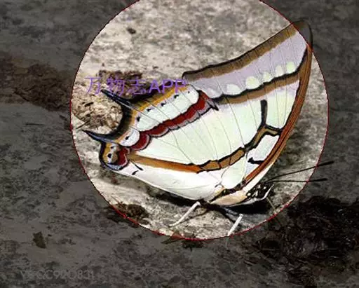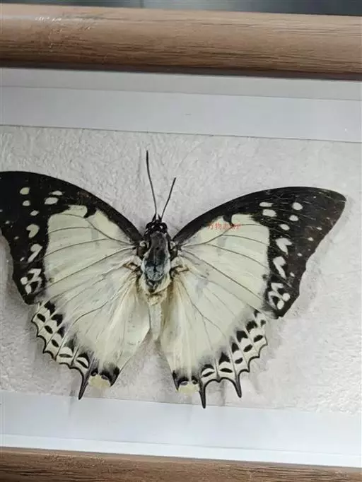 该种雄蝶翅展82mm,雌蝶翅展80mm。外缘有2列黄白色斑,中室端外有2个亚外缘有2列黑斑。翅反面亚外缘横带新月形黑斑列,中横带两侧黑边较粗,横带不分叉,中室内和端脉外各有2个黑点。九连山采集地:大丘田、横坑水、墩头。