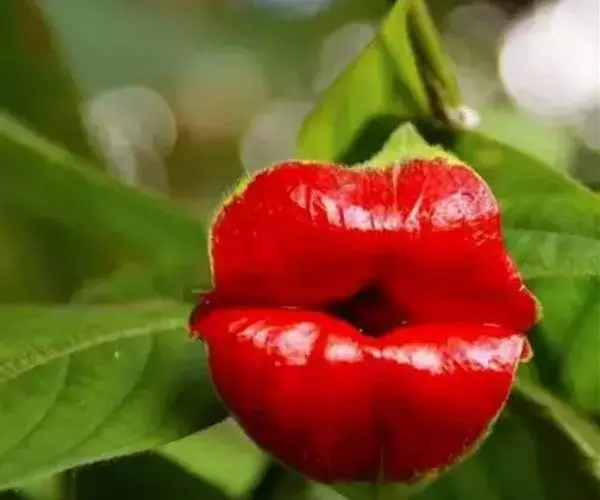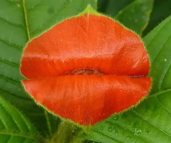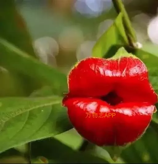 红唇花是半蔓性多年生草本。红唇花茎呈半蔓性,能垂悬生长。叶对生椭圆至长卵形,先端渐尖,边缘波状,叶面微皱。春、夏季开花,花腋生,花冠筒状深裂,桃红色,颇为悦目。与串心花同一属,花型、花色相似,但型态差异较大。叶片光滑,枝条细致柔软易四散下垂,呈现蔓藤植物的样子,但是不具缠绕攀爬的构造。花序生长在叶腋处,能呈现再枝条上成串开花的景象。开花期全年,桃红色的花朵,唇瓣三裂成鸟尾状,姿态美艳可爱。