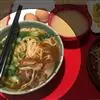 云吞面以云吞和 云吞面 面还有熬好的汤头制成,云吞口感润滑,面入口有弹性,让人回味无穷。