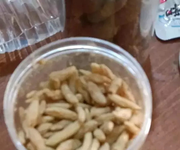 10.再用虎口挤压面皮,呈鱼尾样式;
