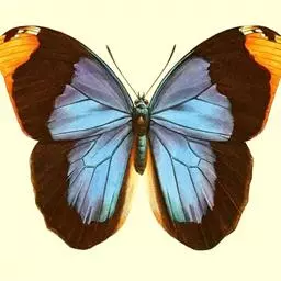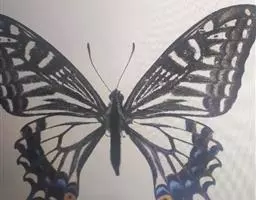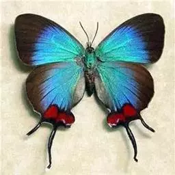 天堂凤蝶翅展可达105mm。前、后翅自基角至后缘约1/2~2/3端为纯净的宝蓝色,后角至后缘1/3…