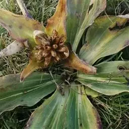 每年6月末到10月发病。此病是危害龙胆草严重的病害。患病叶片出现棕褐色圆形或椭圆形病斑,病斑中央颜色稍浅,边缘褐色,病斑两面处有黑小点,是病原菌的子实体分生孢子器,严重时病斑汇合,叶片枯死,最后导致整株枯萎。6月初至6月中旬用具65%代森锰锌400-500倍液每5-7天喷一次,从6月中旬至于10月用代森锰锌300倍液体3-5天喷一次。也可用于50%多菌灵400倍液体3-5天喷一次与代森锰锌交替使用。