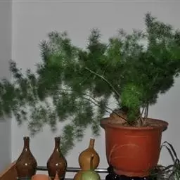 文竹盆载 文竹是观赏价值极高的小植物,以盆栽观叶为主,体态轻盈,姿态潇洒,文雅娴静,是深受人们喜爱的观叶花卉,尤其在书房、案头、卧室、客厅置一盆朱砂盆栽的文竹,配以古铜色花架,显得文雅、别致、大方文竹四季常绿,经冬不凋虽无花之艳丽,但胜花之飘逸。纤细如羽毛之叶,若遇上开花,虽花小色白,但星星点点,在翠绿丛中,显得清雅可爱,而其香却很浓郁。