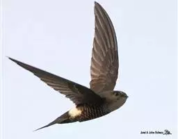 白腰雨燕(学名:Apus pacificus),两翼和尾大都黑褐色,头顶至上背具淡色羽缘、下背、两翅表面和尾上覆羽微具光泽,亦具近白色羽缘,腰白色,具细的暗褐色羽干纹,颏、喉白色,具细的黑褐色羽千纹。喜成群,常成群的在栖息地上空来回飞翔。飞行速度甚快,常边飞边叫,声音尖细,为单音节。以各种昆虫为食,主要种类有叶蝉、小蜂、姬蜂、蝽蟓、食蚜蝇、寄生蝇、蝇、蚊、蜘蛛、蜉蝣等。在飞行中捕食。