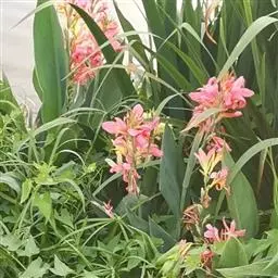 粉美人蕉:是一种球根草本植物。根茎延长,株高1.5-2米;茎绿色。叶片披针形;总状花序疏花,单生或…