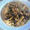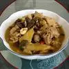 6.把三鲜倒进锅里,然后按日常炒菜顺序下生抽(酱油),黄酒,鸡精,盐,如果有荤汤(比如排骨汤,猪脚汤)可下一勺,别太多猛火煮一分钟,再加少许淀粉(水淀粉、芡粉)略炒,出锅,开吃。