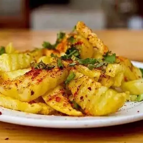 地三鲜的主要食材是土豆、茄子、青椒。土豆经过高温油炸后,会生成丙烯酰胺等致癌物;茄子富含维生素P和抑制角苷,常吃能降血脂,但具有超强的吸油能力,炸过的茄子,简直变成了小油包;青椒经过油锅“洗礼”,维生素C差不多也消耗殆尽了。