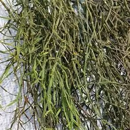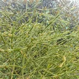 常绿小乔木,高约10米;树皮褐色,粗糙或有纵裂;枝圆柱状,带灰褐色,具条纹,有多数皮孔和半圆形的叶痕;多分枝,幼枝光滑无毛;小枝细长,淡绿色,节间稍肿大。