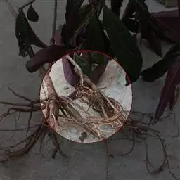萌枝扦插后15天,在插条切口处长出愈伤组织,30天左右从愈伤组织或插条基部长出1~3条粗根。此时移植较为适宜。移栽时把生根的插条移人种有寄主的营养袋。袋土要求疏松肥沃。移植后把袋苗放置半荫处或利用寄主遮荫,并注意喷水,一个月左右,小苗长定后,可搬到全阳光处或剪去遮盖的寄主,继续培育。
