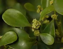 三歧聚伞式圆锥花序腋生或顶生,长2.5~4厘米;苞片2枚,微小,位于花序的基部,钻状披针形,长2.5~3毫米,早落;总花梗长2~5厘米;花梗长2~4毫米,花梗对生,长约与花被管相等,有细条纹;花长4~4.5毫米,直径5~6毫米,花多数,最初为淡黄色,后变为深锈紫色;花被管钟状,长约2毫米,淡绿色;花被4裂,裂片卵状三角形,长2~2.5毫米,内部初时绿黄色,后呈深棕红色;蜜腺4枚,略呈圆形;雄蕊4枚,长约2.5毫米,外伸;花盘裂片卵圆形,长约1毫米;花柱长3毫米,深红色,柱头浅3(~4)裂。