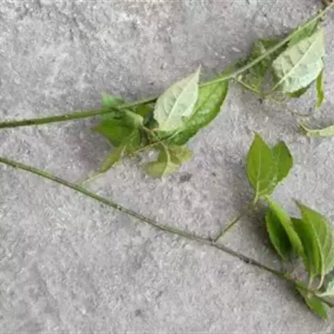 插条采回后先用清水洗干净再剪。普通枝条截成长8~10cm,具3~4个节,顶带2片叶的枝段,顶梢和萌枝则去除下部分叶子;或按不同扦插试验,把普通枝条截成全木质化枝段、半木质化枝段、绿枝段和顶梢。