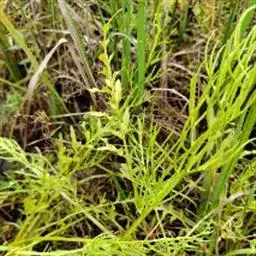 苗期寄主假蒿是草本植物,在春夏高温高湿季节,是假蒿旺长期,一个月时间内假蒿可长1米多高,而且一丛假蒿会抽发几十个单株,在雨水后很容易倒伏,压在檀香苗上,造成檀香生长不良及主杆弯曲甚至致死,因此在5~9月每月都要到田间巡查对于高于檀香苗的假蒿,要及时用镰刀割短。保证檀香苗木不被遮阴及覆盖。