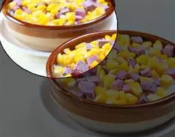 是一道色香味俱全的传统名肴,属于湘菜系。此菜柔滑细嫩,咸鲜适口,菜相美观,豆腐如河水中的小白石,再有蛋黄如月映小河,勾芡后,看起来色泽清雅,美不胜收。用小勺舀上一勺送入口中,感觉滑嫩鲜甜。集色泽、味道与文化内涵于一碟,营养丰富却又经济实惠。